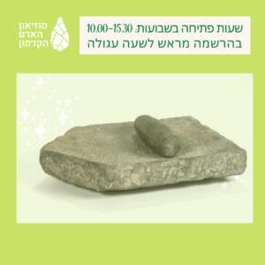 الفعاليات والأنشطة يجري المتحف مجموعة متنوعة من أنشطة الإثراء والإبداع للبالغين والأطفال: محاضرات رائعة وورشات عمل حرفية عتيقة ، مثل ايقاد النار ، تشذيب الصوان ، وصنع السلال وغيرها. نحن نحب أن أراك معنا. للحصول على قائمة مٌحتلنة بالفعاليات القادمة (المعلومات العبرية):